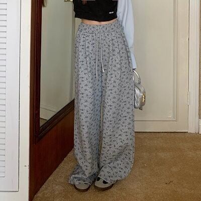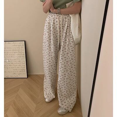 2024春の新韓系オールインワン花柄カジュアルパンツウエストワイドパンツ女性