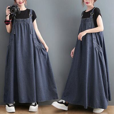 韓国ファッション デニム サロペットスカート 大きいサイズ 通勤 デニムワンピースゆったりおしゃれ
