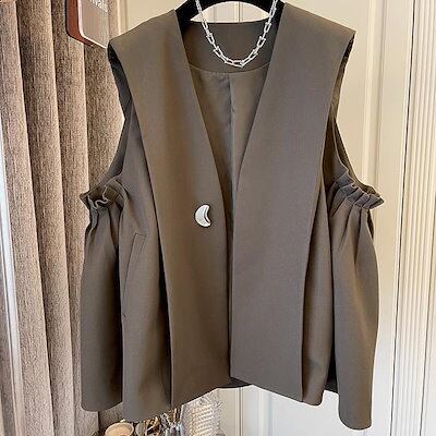 韓国ファッション 2024春新作 ベスト レディース ジャケット ゆったり アウター レディース 通勤 タンクトップ ベスト プリーツ ベスト着痩せ アウター ジャケット