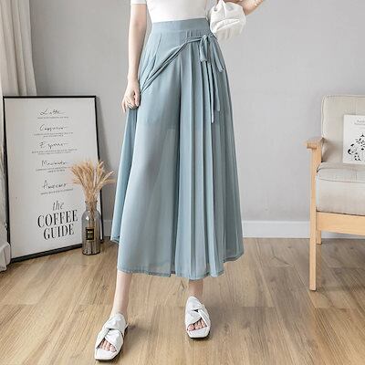 2024 スカート 韓国ファッション スラックスパンツ シフォンパンツ フレアパンツ ハイウエスト パンツ夏 薄手 ワイドパンツ レディース ロングパンツ
