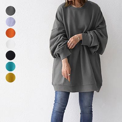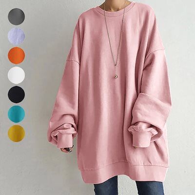 春 秋 Tシャツ カットソー オーバーサイズ 長袖 綿 無地パーカー レディース トップス 大きいサイズ ロング 韓国ファッション 上着 ゆった プリントカットソ