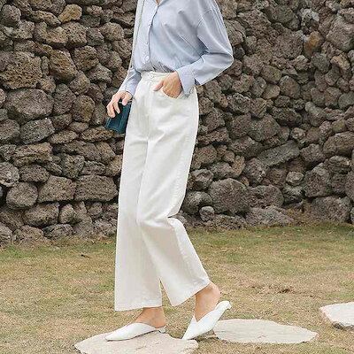 レディース ストレートパンツ ハイウエスト アンクルパンツ クロップド ボトムス カジュアル 可愛い フェミニン きれいめ エレガント おしゃれ お出かけ オフィス デイリー ブラック ホワイ
