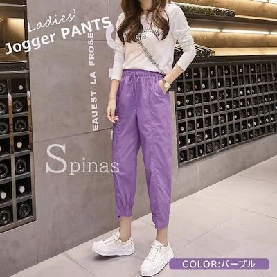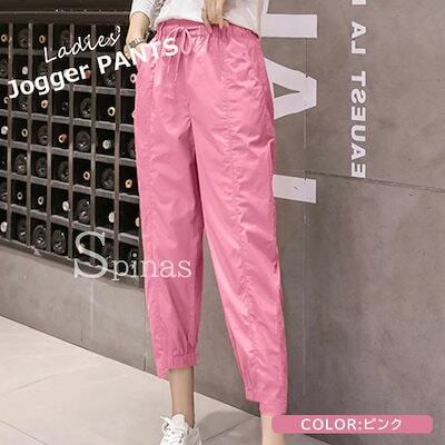 動きやすいシルエットのジョガーパンツ パンツ ジョガーパンツ レディース カラーパンツ アンクル丈 ストレート ボトムス キャンディーカラー ドローストリング 全5色