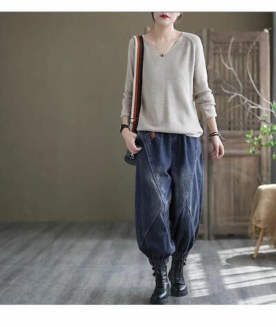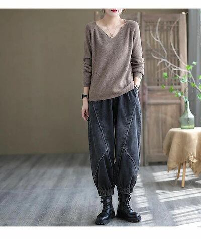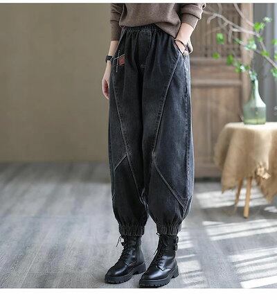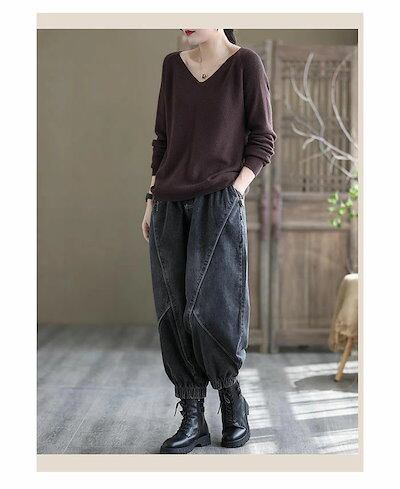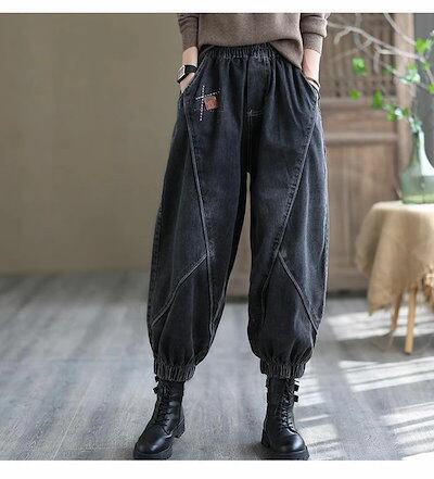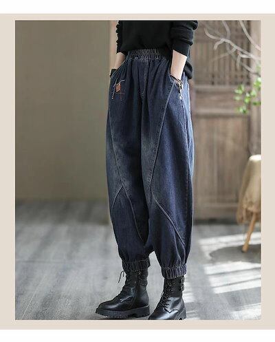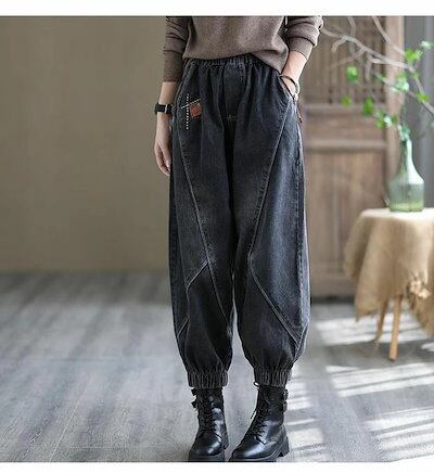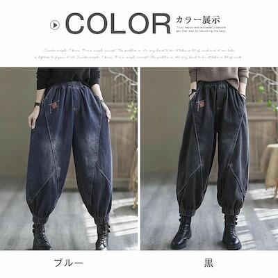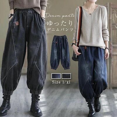 デニムパンツ レディース 秋 冬 大きいサイズ サルエルパンツ ワイドパンツ 体型カバー サルエル パンツ ジーンズ デニム パンツ アンクル丈 カジュアル パンツ ボトムス ゆったり