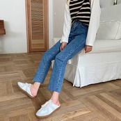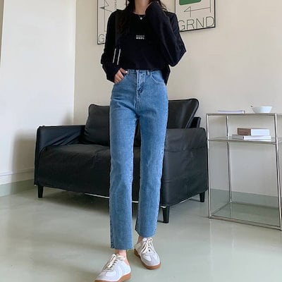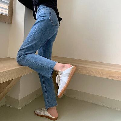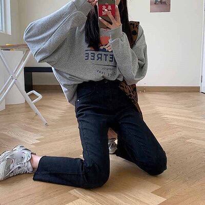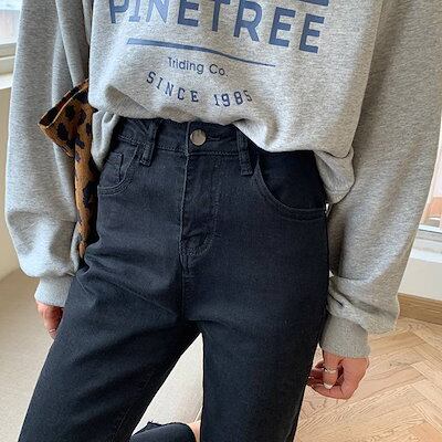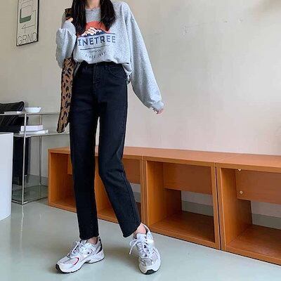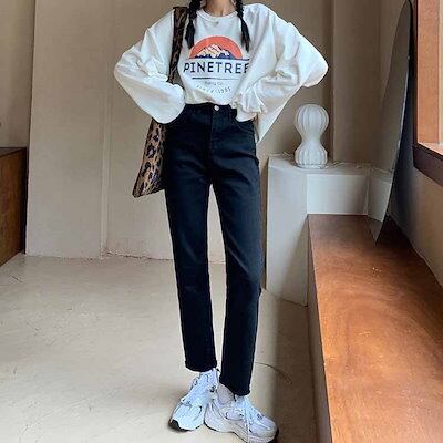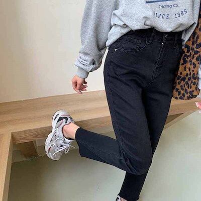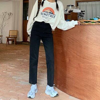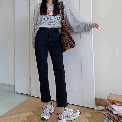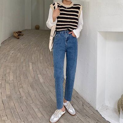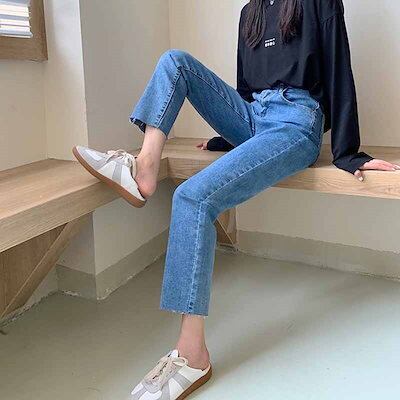 2色 デニム パンツ レディース ズボン ボトムス 切りっぱなし 無地 Gパン ストレート ハイウエスト カジュアル 細身 レトロ アンクル丈 9分丈 大人かわいい 着回し おしゃれ 定番 アイテム