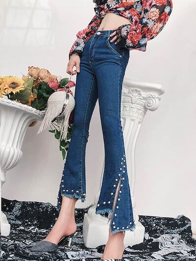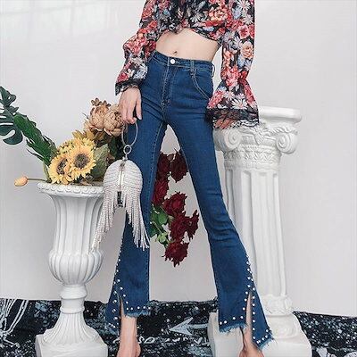 デニム パンツ 切りっぱなし ジーンズ ロング丈 アンクル丈 スリム スリット 個性的 カジュアル スキニー デニム ジーパン スタイルアップ カッコイイ ラフ クール いい女 春 夏 秋 冬 レディ