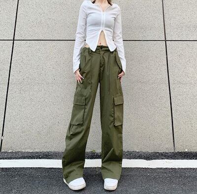 ワイドパンツ バギーパンツ パンツ ロングパンツ カーゴパンツ チノパンツ レディース ゴム ズボン ボトムス 着痩せ 楽ちん 春 夏 S M L 2L