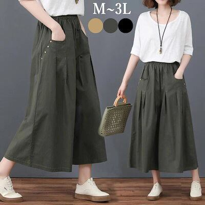 パンツ レディース ガウチョパンツ ワイドパンツ チノパンツ ワイドベイカーパンツ プリーツ スカーチョ プリーツスカーチョ 春 夏 M L 2L 3L