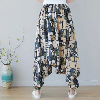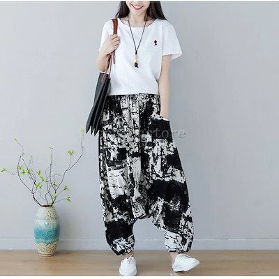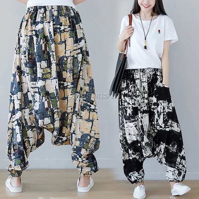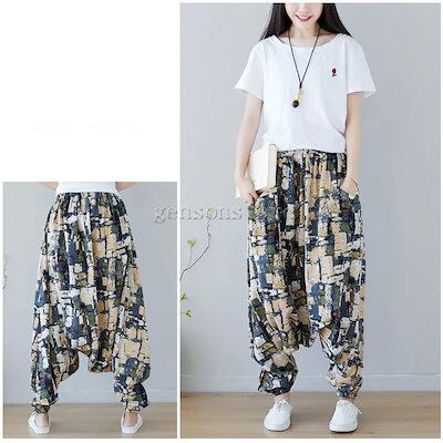 綿麻 サルエル ワイドパンツ 大きいサイズ レディース ボトムス エスニック 総柄バルーンパンツ 袴パンツ アラジンパンツ チノパン タイパンツ ハーレム