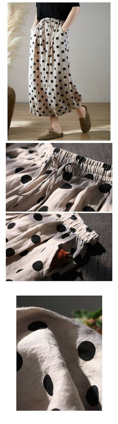ワイドパンツ リネン コットン 夏 レディース パンツ ガウチョパンツ 綿麻風パンツ ドット 水玉柄 チノパン ズボン 九分丈 ボトムス イージーパンツ バギーパンツ 大きいサイズ ゆ