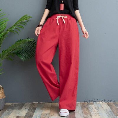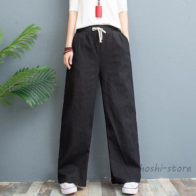 15日間のみ ワイドパンツ レディース パンツ ウエストゴム リネン 綿麻 薄手 チノパン ズボン ロング ボトムス ゆったり イエロージーパンツ ガウチョ カジュアル 店舗をフォローしてクーポンをゲ