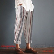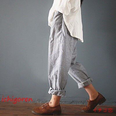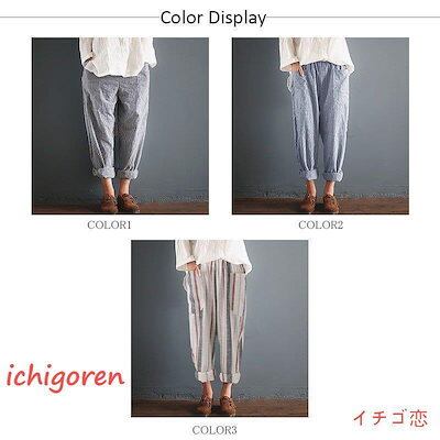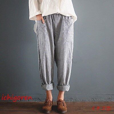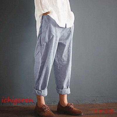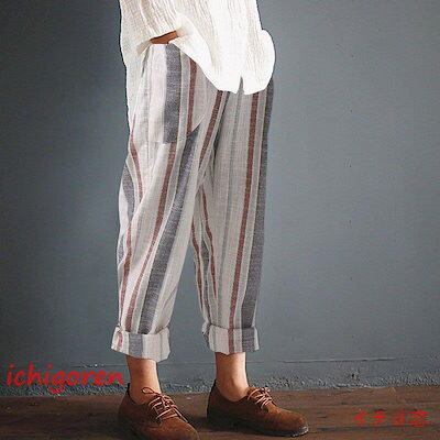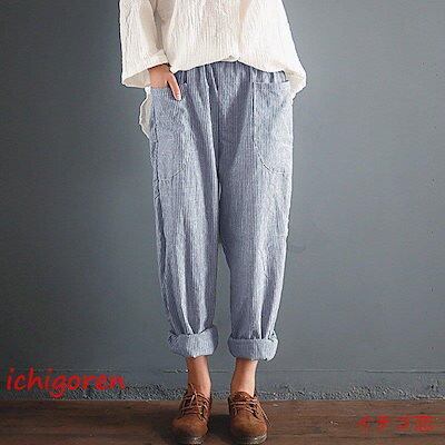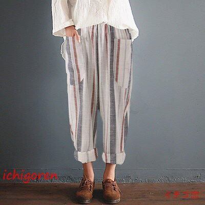 期間限定オファー サルエルパンツ レディース ロング丈 ボトムス テーパードパンツ チノパン ロングパンツ パンツ ゆったり コットン リネン 綿麻 ストライプ 薄手 春 夏 秋 迅速な配送 送料無