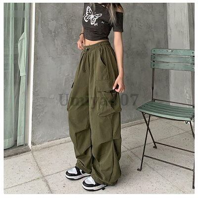 【急速出荷!】カーゴパンツ レディース ロングパンツ ミリタリーパンツ チノパン ワークパンツ ダンス衣装 ウエストゴム 美シルエット