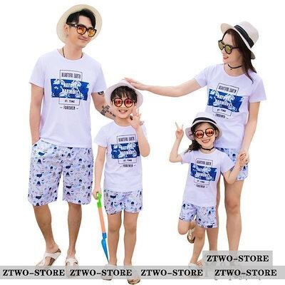 【急速出荷!】親子服 親子ペア 親子お揃い 上下セット 半袖 ペアルック 恋人 親友 カップル レディース 夏カジュアルドレス 男女兼用チノパン 家族旅行