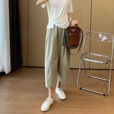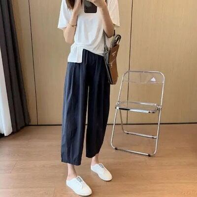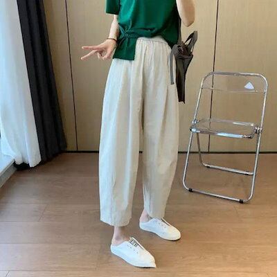 レディース 大きいサイズ サルエルパンツ 100%綿 速乾 ボトム L パンツ チノパンツ コクーンパンツ ナチュラル 低身長 コットン ゆったり S