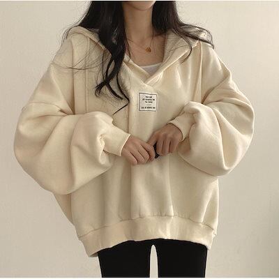 【限?折扣】メガ割 3日内出荷パーカー ゆったりスウェット 服レディースゆったりアウター スウェット怠惰な風蝶スリーブゆったりとした汎用性の高いVネックフード付きトップススウェットジャケ