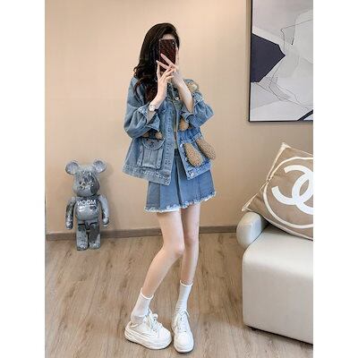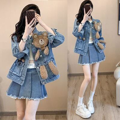 デニムジャケット レディース 韓国風カートゥーンくまのカウボーイ上着トップス アウター