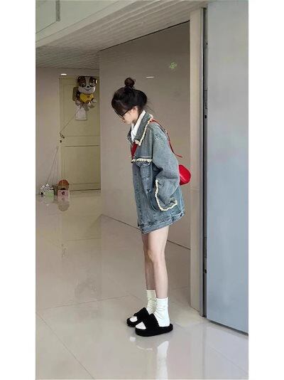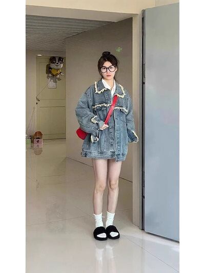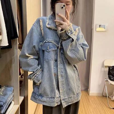 2025新作 デニムジャケット レディース 古いフリンジコートを作る女春レトロでゆったりカジュアルなワークジャケット 春アウター 韓国ファッション