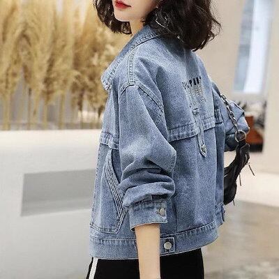 新作 デニムジャケット レディース アルファベット刺繍のゆったりとしたスタイリッシュなショート丈ジャケットのトップス 韓国 トップス アウター