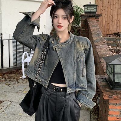 2025新作 デニムジャケット レディース 復古 せっけいかんかく ショート丈 スタンドカラージャケット 上着春アウター 韓国ファッション