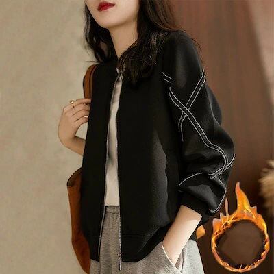 冬アウター裹起毛韓国ファッション 秋ジャケット アウター レディース フィットアウター ゆったりスウェット トップス カーディガンアウター 裹起毛コート