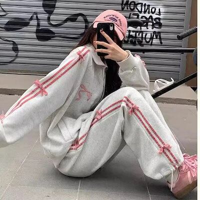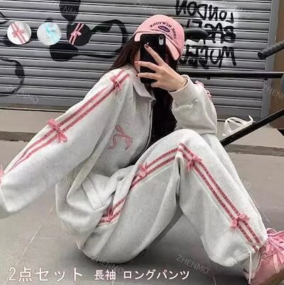 セットアップ レディース 春 ジャージ スウェット ジップアップ 長袖 ロングパンツ 上下セット スポーツ カジュアル 韓国ファッション 可愛い 通学 アウター 春服