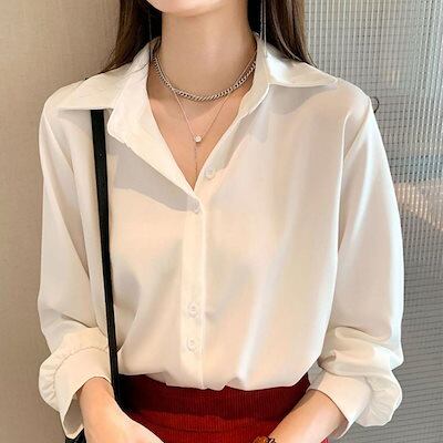 安い商品 今日だけ 長袖シャツ シフォンシャツ レディース 女性 トップス スタンダードカラー 前ボタン 無地 単色 シンプル 着回し フォーマル カジュアル 大きいサイ ギフトポイント