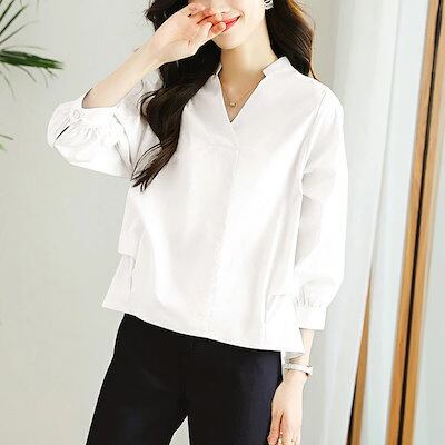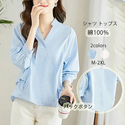 ブラウス レディース 白 シャツ レディース 白ブラウス 無地 七分袖 バックボタン 100%綿 コットン シャツブラウス フォーマル スッキパー トップス 白シャツ スーツインナー お洒落 可愛い