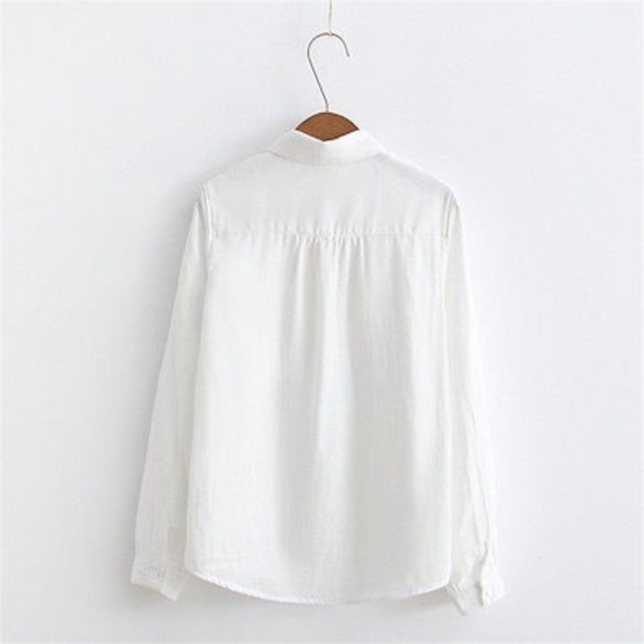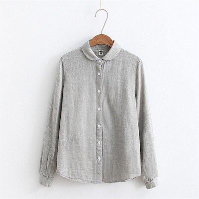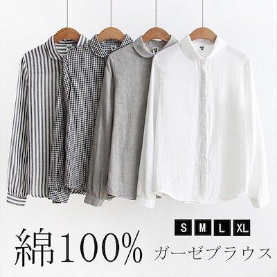 白シャツ ガーゼ ブラウス レディース 無地 長袖 春 秋 ホワイト ストライプ柄 チェック柄 コットン 綿 柔らか シンプル 折り襟 ボタン留め 大きいサイズ 40代