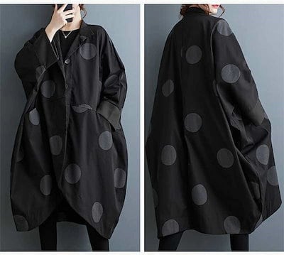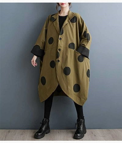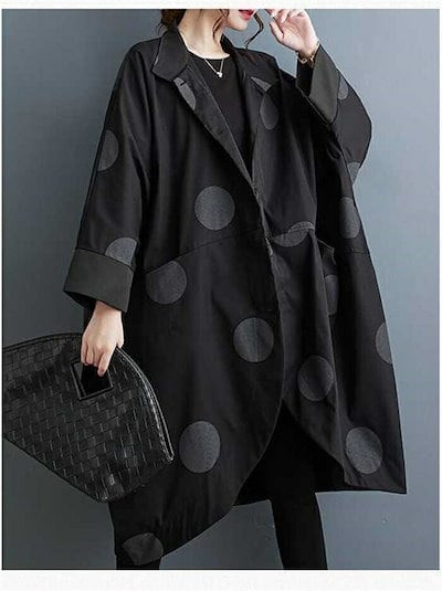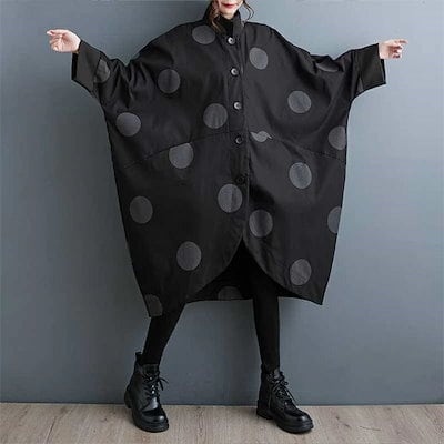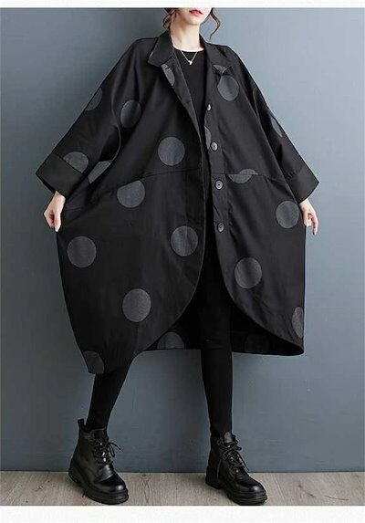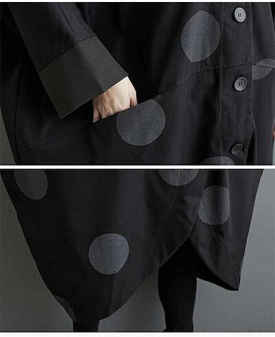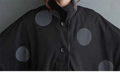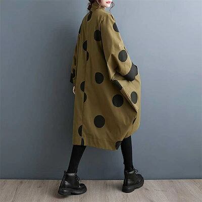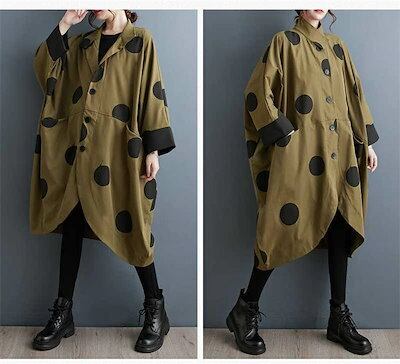 コート レディース 春秋 トップス カーディガン ポケット付き 総柄 ドット柄 前開き 羽織り ボタン 立ち襟 ロングコート ロング丈 ドットコート カジュアル シンプル アウター レイヤード 重ね着