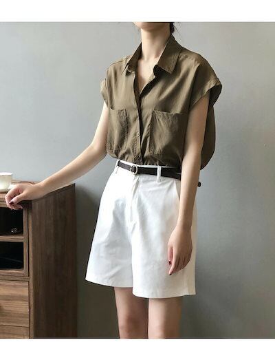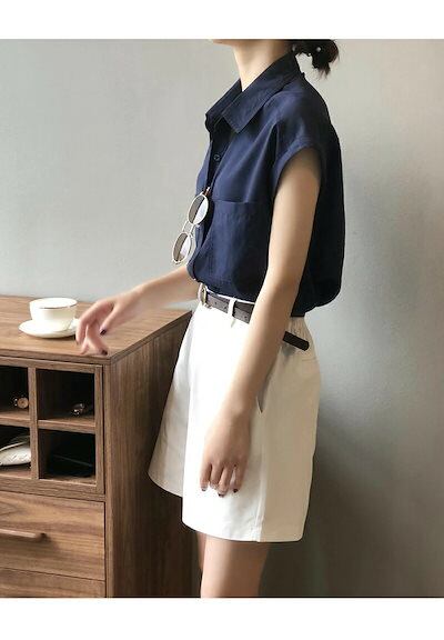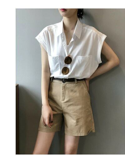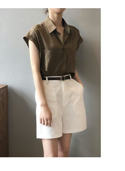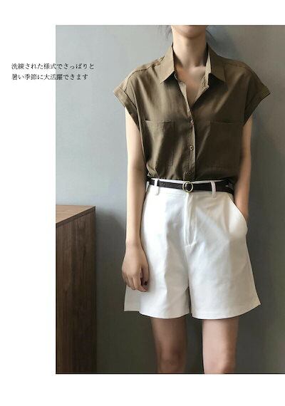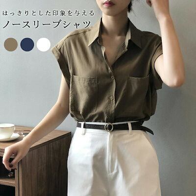 シャツ レディース ノースリーブ ノースリーブシャツ ブラウス ノースリーブブラウス 袖なし 夏シャツ トップス 前開き ボタンシャツ 無地 大きいサイズ 夏服 夏物 角襟 不規則裾 痩せ見せ 通気性