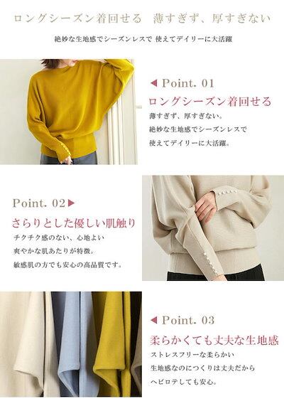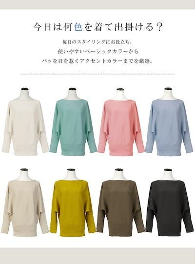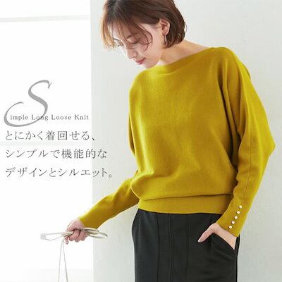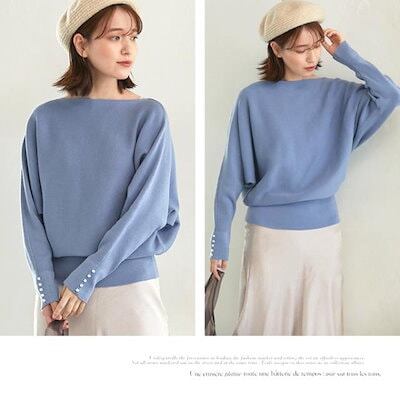 ニットセーター レディース 袖パール スラッシュドネック 飾りボタン パールボタン 長袖 無地 ドルマン袖 ニットソー トップス M L