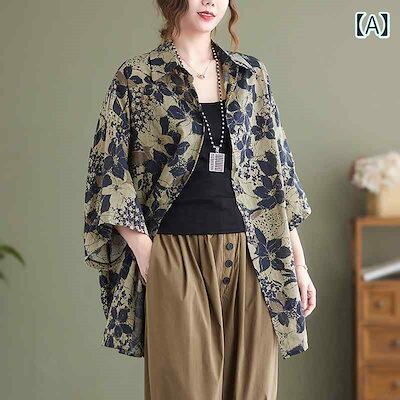 超目玉新品 ロングシャツ 花柄 おしゃれ シャツ ロング丈 ルーズ ブラウス 映えボタン フラワー ボタニカル 大きめ ダボっと トップス レディース 渋色 ニュアンスカラー アジアン エスニック 半