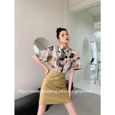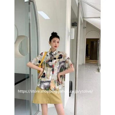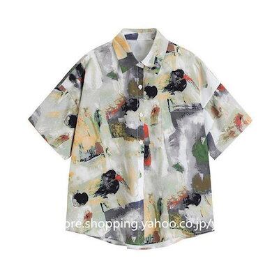 フロントボタン 夏 半袖 柄シャツ シャツ トップス レトロ 大きいサイズ ゆった 夏服 半袖シャツ 総柄 ブラウス レディース