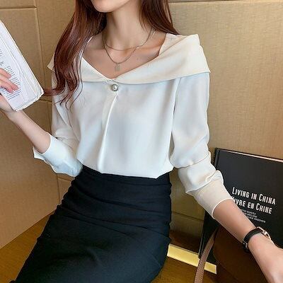 無料出荷(Timesales)ブラウスレディースシフォンブラウス秋長袖シャツオフィス通勤シフォンシャツカジュアルデザイン感セレモニーフランス風シフォンボタン付き