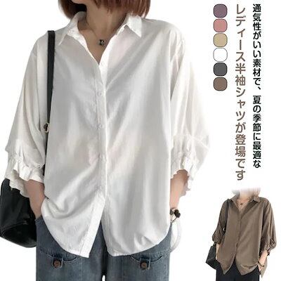 M-4XL 半袖シャツ レディース 夏 シャツ ブラウス 春 トップス シャツブラウス カジュアル 無地 ゆったり 体型カバー 着痩せ ボタン留め おしゃれ 大人 シンプル 通勤 オフィス 涼しい 通