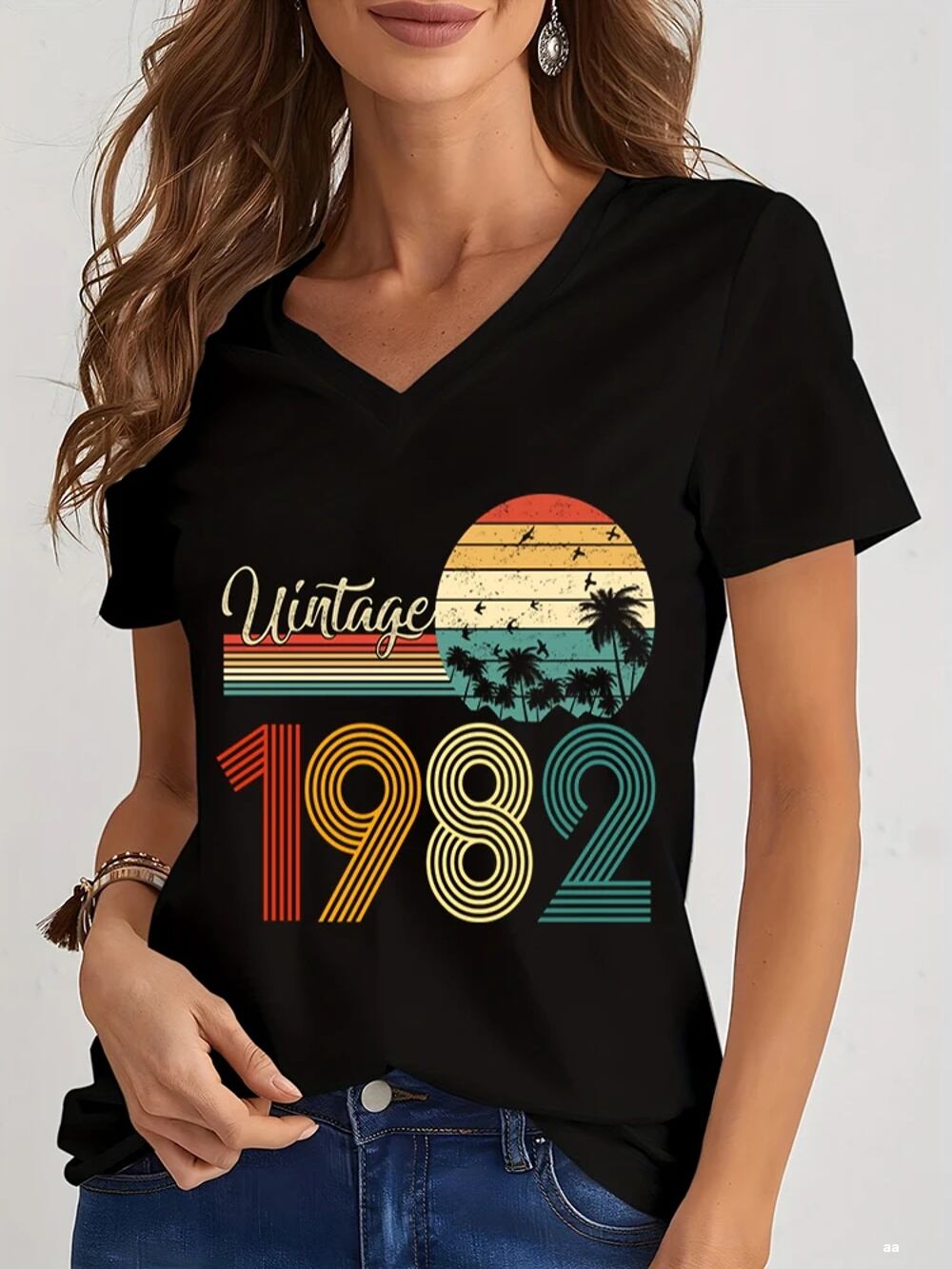 原宿 女性向けのヴィンテージ半袖Tシャツ,フェミニンなVネックシャツ,用途の広い,トラベルウェア,1984ファッション ボトム ボトムス ズボン T240619133451_04