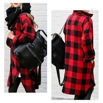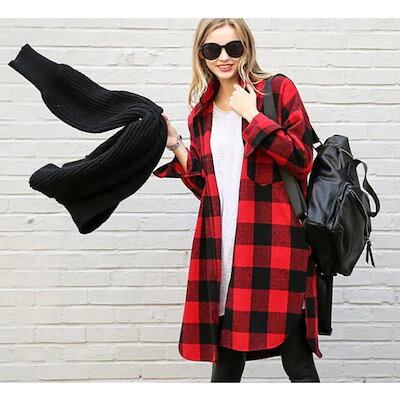 メガ割 長袖 レトロ チェック レディース ゆったり 赤 大柄チェック カーディガン アウター ロング