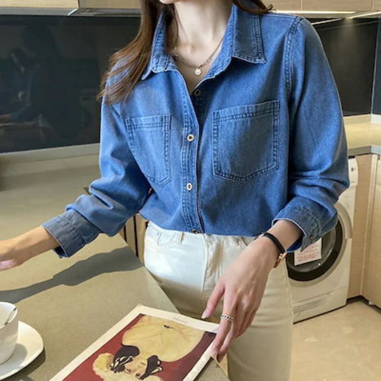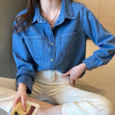 メガ割 シャツ 長袖 ブラウス 重ね着 レトロ ブルー 気質 新作 トップス シャツ 長袖 韓国ファッション カジュアル 百掛け 大きいサイズ 無地 アウター お肌に優しい 着やせ