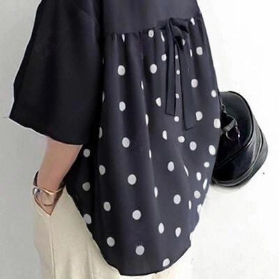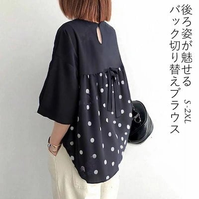 ブラウス 半袖 レディース 半袖ブラウス 柄 おしゃれ 半袖シャツ 涼しい トップス 春 夏 バックリボン ドット 水玉 シャツブラウス 7分袖 七分袖 プルオーバー ゆったり カ