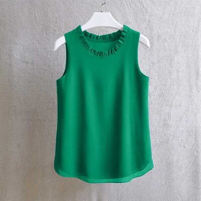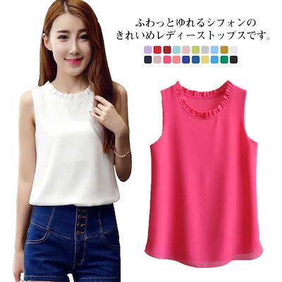 全20色 タンクトップ レディース シフォン ブラウス スカラップ襟 ノースリーブ トップス ノースリーブシャツ インナー フェミニン エレガント カジュアル 無地 30代 40代 50代 20代