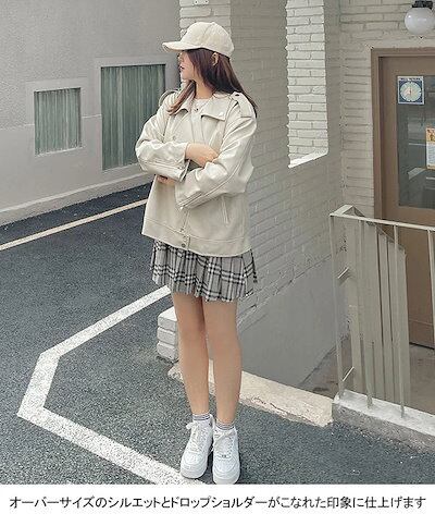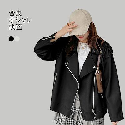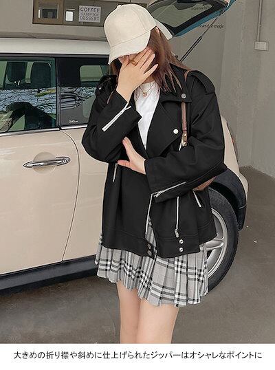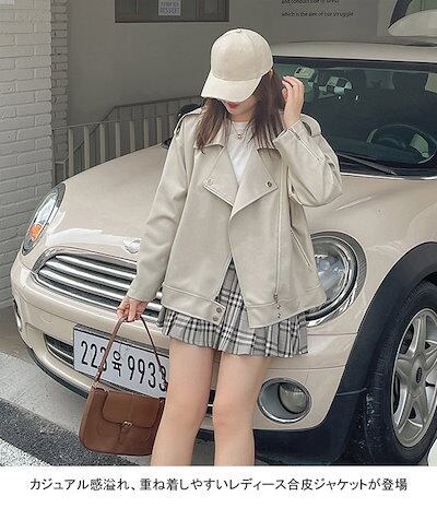 ジャケット コート レディース 合皮 PU アウター トップス 羽織 前開き 折り襟 ファスナー付き ポケット 着回し 快適 カジュアル きれいめ お洒落 上品 可愛い ミディアム丈 通勤 ビジネス