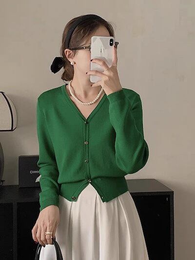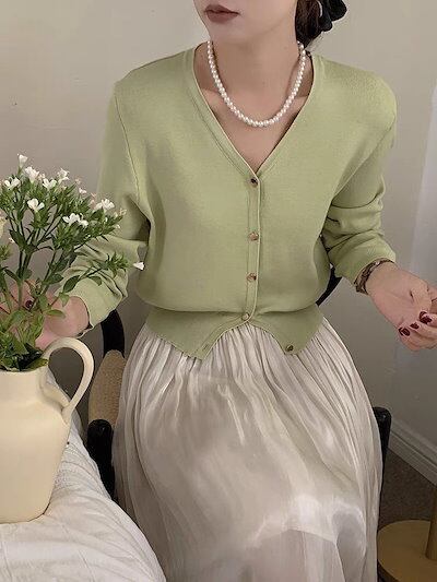 人気なリブニットレディース ニットカーディガンカーディガンジャケットv襟 ベーシックニットセーター2025日韓ファッション 快適