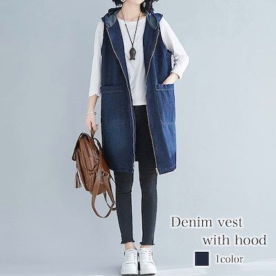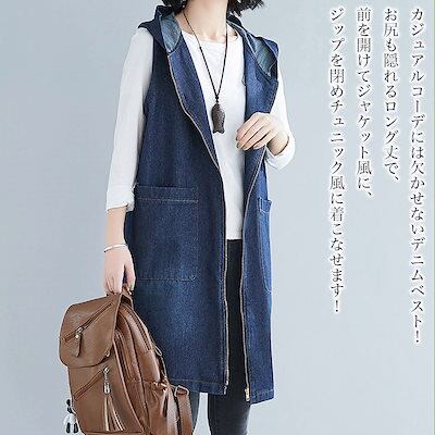 ベスト レディース フード付きデニムベスト 襟なし ロング 人気 スポーツ 可愛い アウター インナー ブランド シニア お年寄り 冬 ニット 春 羽毛 スーツ ウール アーガイル キルティング キル