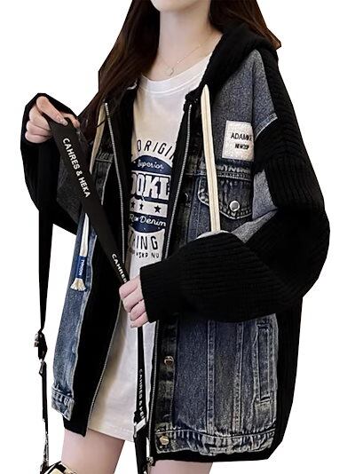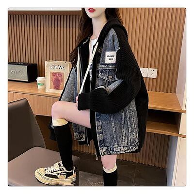 ジップアップ パーカー レディース トレーナー ジャケット おしゃれ アウター 秋 コート ニット コート デニム ジャケット バイカラー フード付き パーカー きれいめ