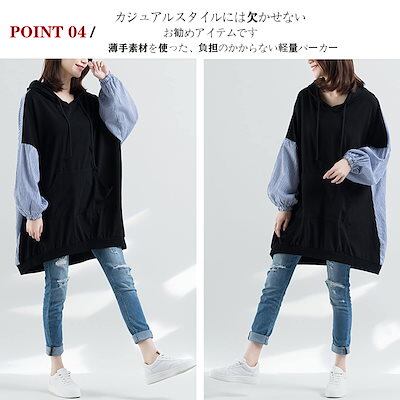 パーカー レディース 長袖 プルオーバー 切り替え ロングtシャツ フード付き トップス アウター トレーナー オーバーサイズ 体型カバー 大きいサイズ 男女兼用 着痩せ 可愛い カジュアル 通勤