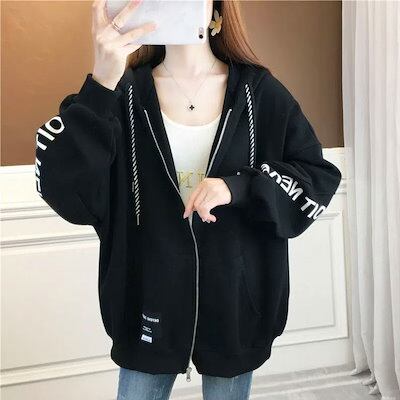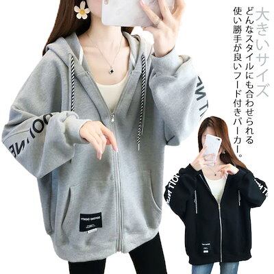 パーカーレディーストップス羽織りジップアップフード付き前開き長袖スウェットトレーナートップスアウター長袖大きいサイズゆったり体型カバー春秋スポーツ可愛い