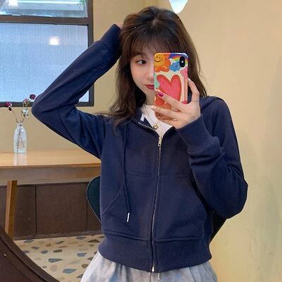パーカーレディースジップジャケット2025秋作ゆったりフード付きショート長袖薄カーディガンスウェット韓国