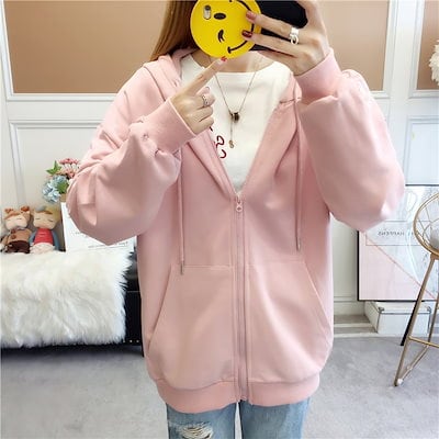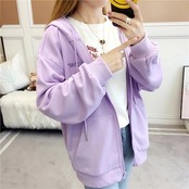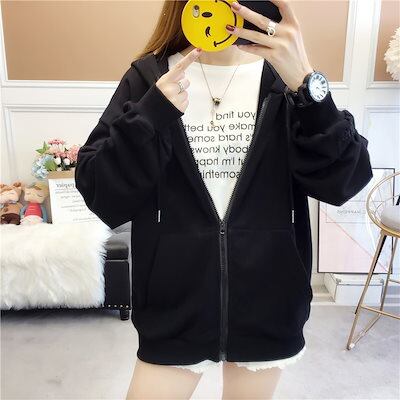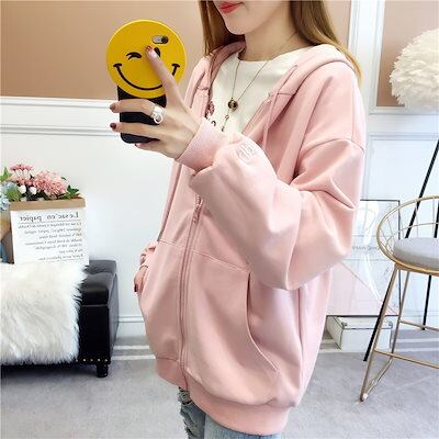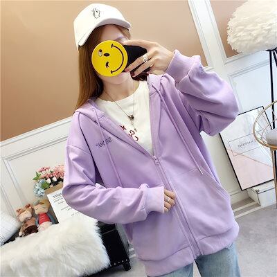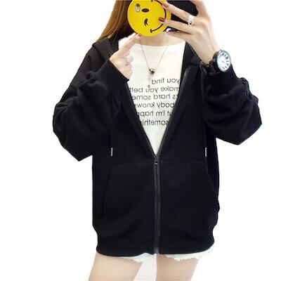 パーカーフード付き薄スウェットレディースゆったり学生百掛け2025春秋ジャケット長袖ジップカーディガン韓国