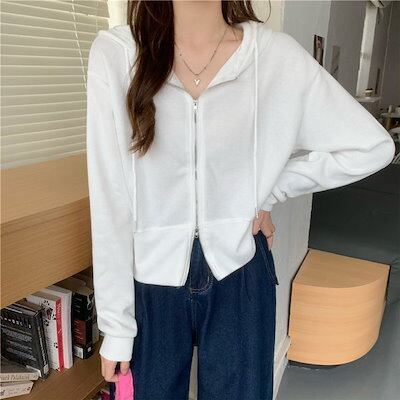 パーカースウェットレディース2025春秋作ハイウエストショートジャケット長袖ブラウス韓国